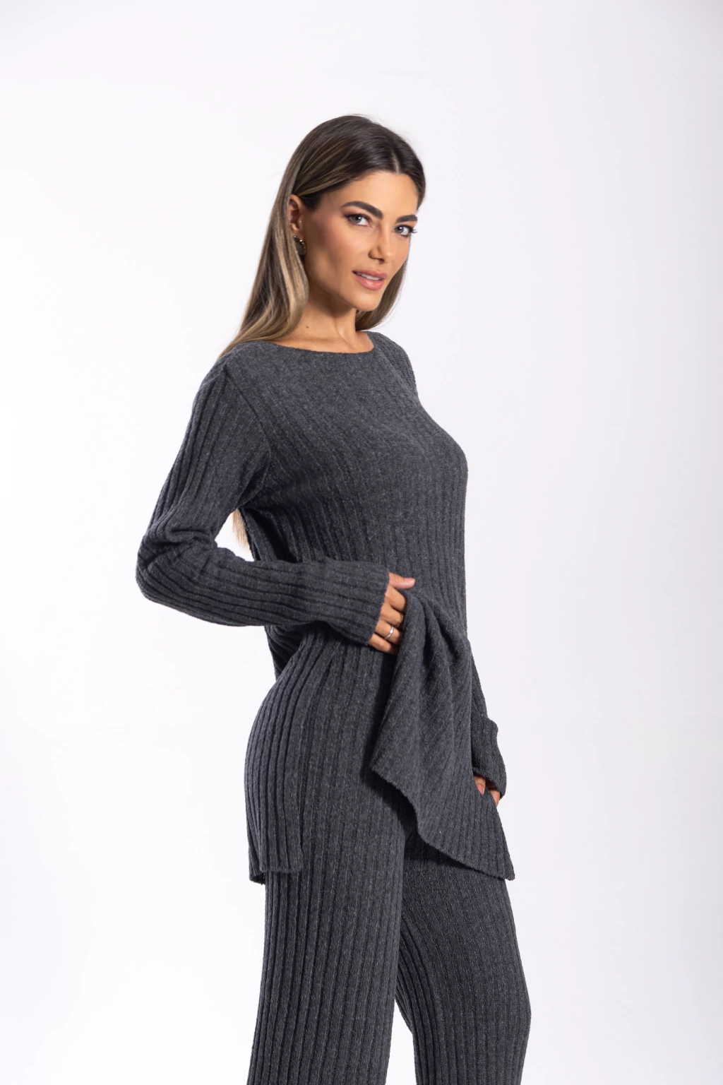 Descubra a sofisticação e o aconchego deste conjunto feminino de tricô, composto por blusa e calça em fio Mousse com textura canelada em um tom moderno de grafite chumbo. Ideal para criar looks confortáveis e elegantes, essa peça é perfeita para o dia a dia ou ocasiões especiais.