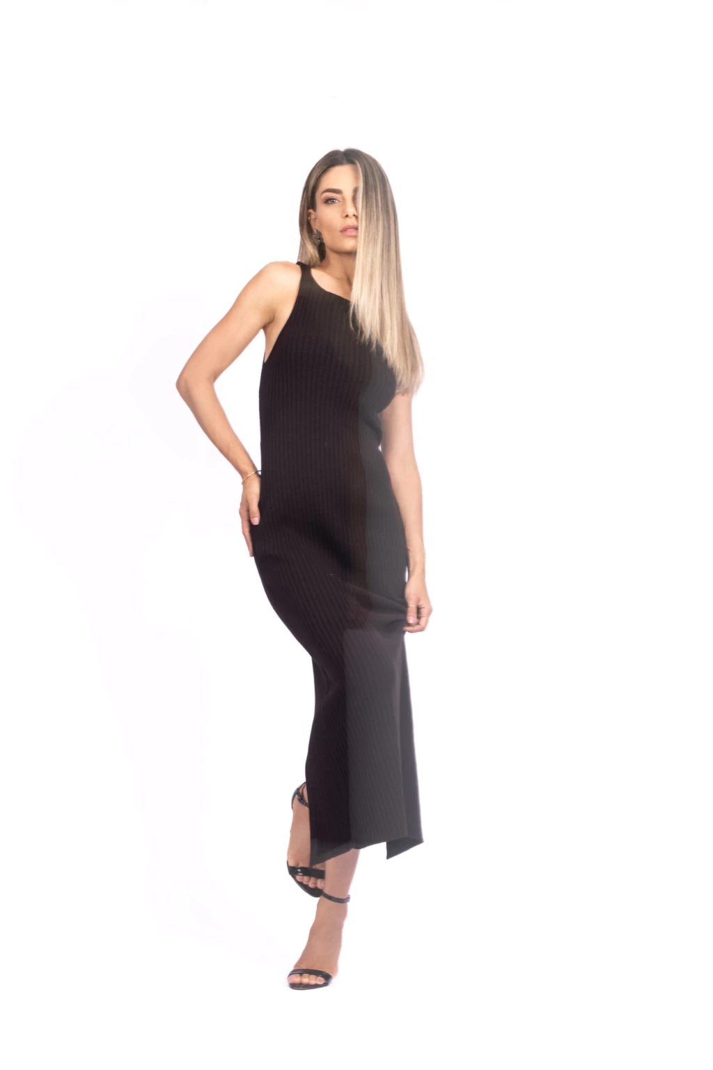 Combinando design elegante e tecido confortável, este vestido midi em tricô canelado é a escolha perfeita para quem busca estilo e praticidade no dia a dia.