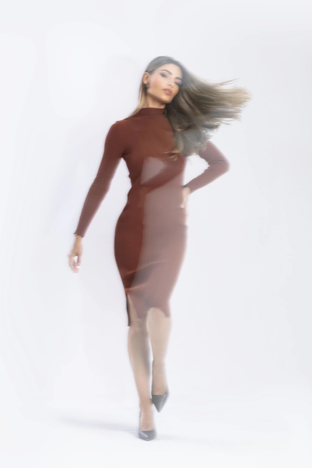 - O corte justo e o detalhe canelado valorizam a silhueta, enquanto a gola média e as mangas longas trazem sofisticação à peça.