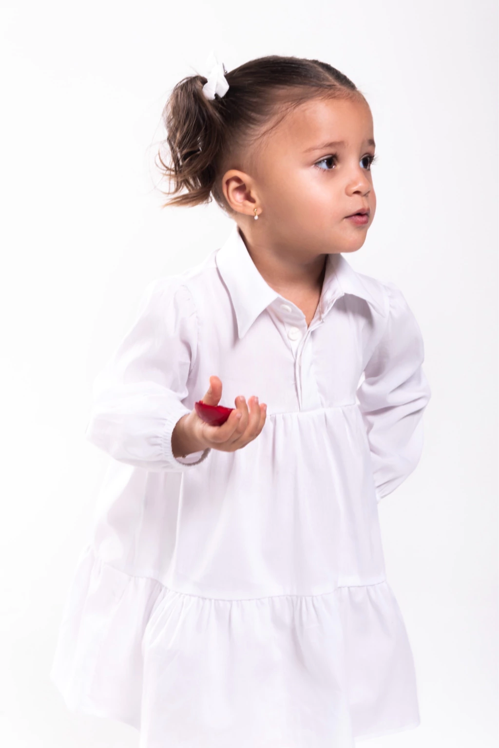 Vestido Infantil Camisa Midi com Drapeado - Elegância e Conforto para as Pequenas